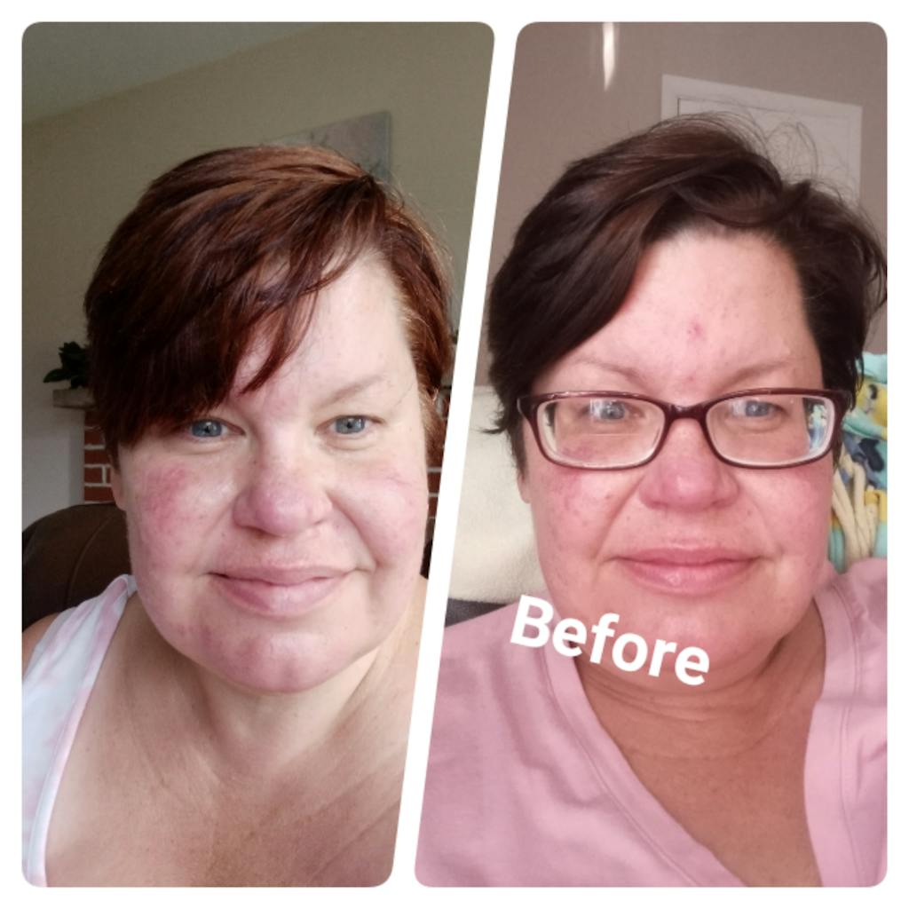 I've struggled with rosacea forever! I'm almost 50 years old and thought I would be stuck with ache as an old lady. Wal-la! This is just incredible. Those who know me know my struggle with slap face red and ache. I look amazing just within four days.